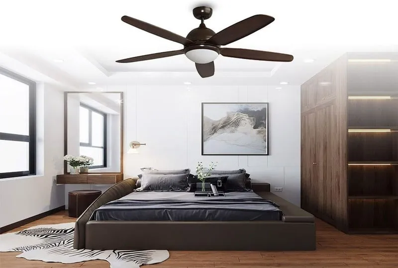 Trong phòng ngủ, bạn cần tạo ra một không gian thư giãn và thoải mái.. Vì vậy, khi chọn quạt trần cho phòng ngủ, gia chủ nên ưu tiên thiết kế đơn giản và nhẹ nhàng. Quạt trần nhỏ cho phòng ngủ với thiết kế đơn giản cũng sẽ giúp bạn dễ dàng vệ sinh và bảo trì.
